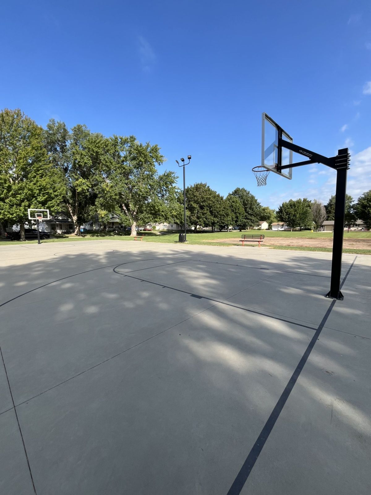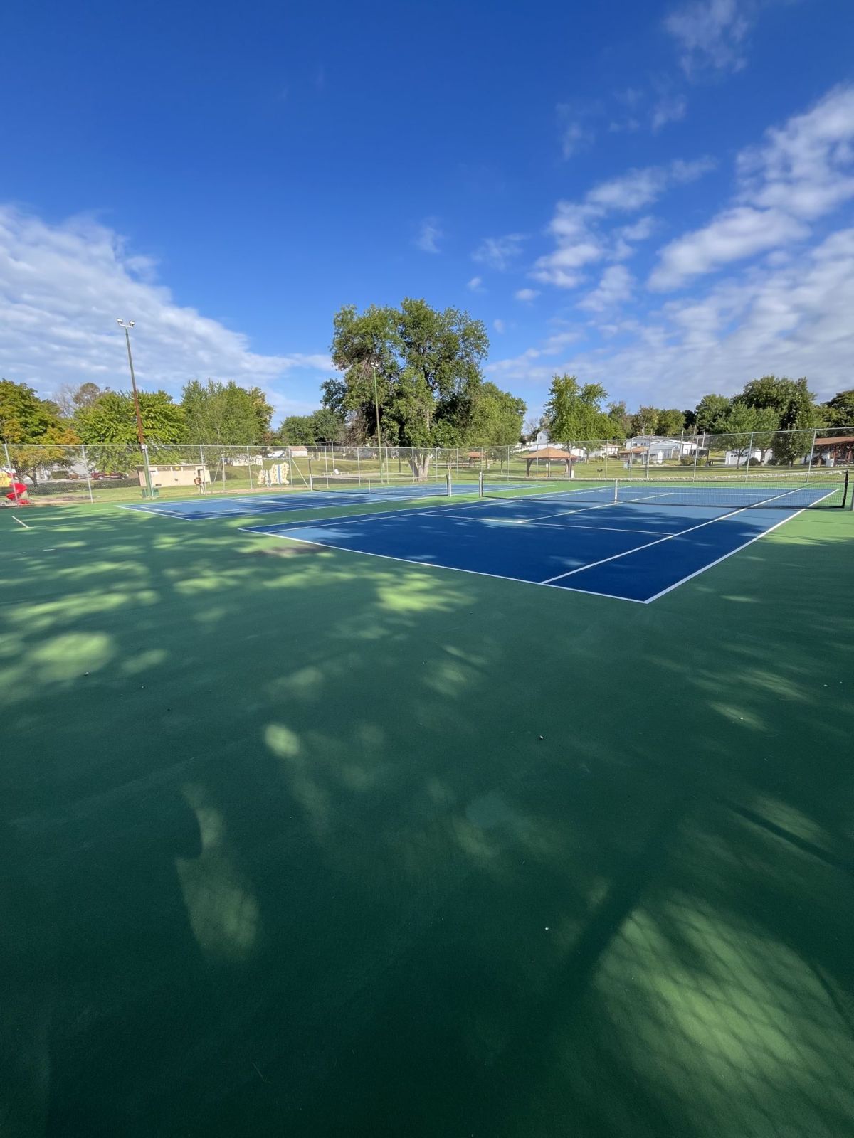 Features of the park include a tennis court, pickleball court, ball field, basketball court, picnic shelters and playground.