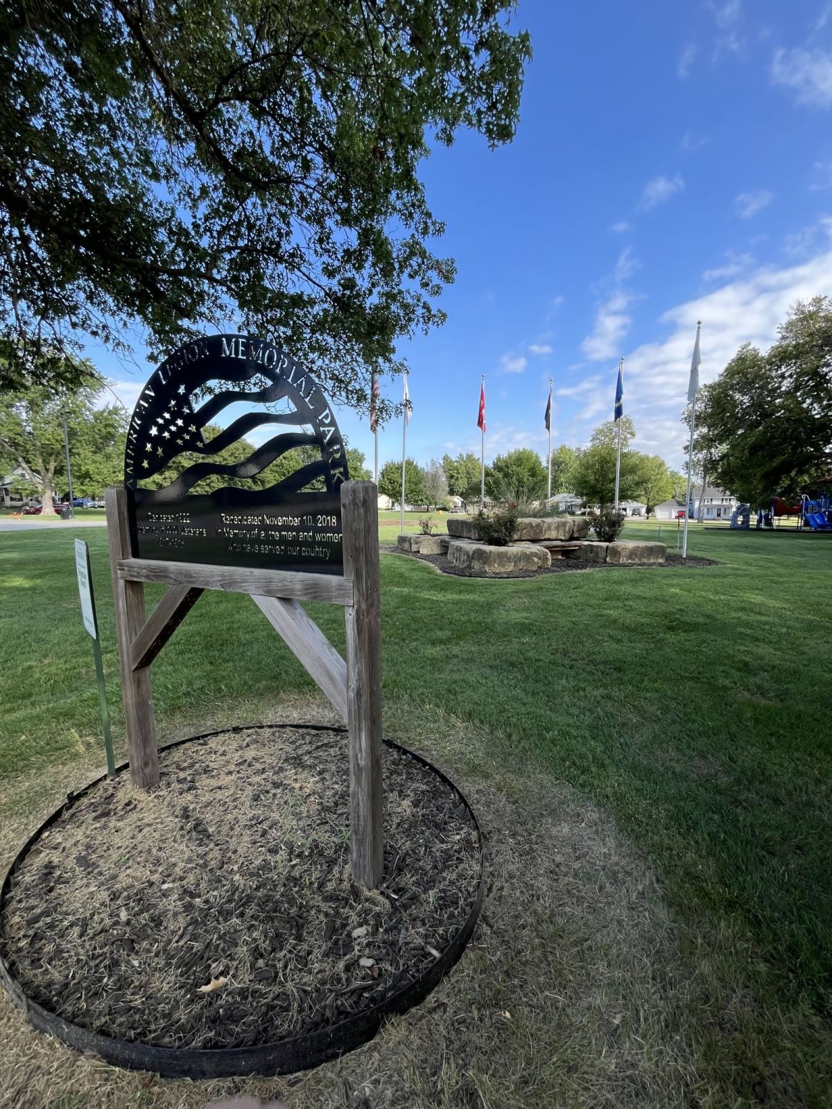 This park is dedicated to our service men and women who have proudly served our country. On display is a ship’s anchor, to represent the Marines, Navy and Coast Guard; a tank and Howitzer, to represent the Army and National Guard; and a B-17 bomber prop, to represent the Air Force and Air National Guard.