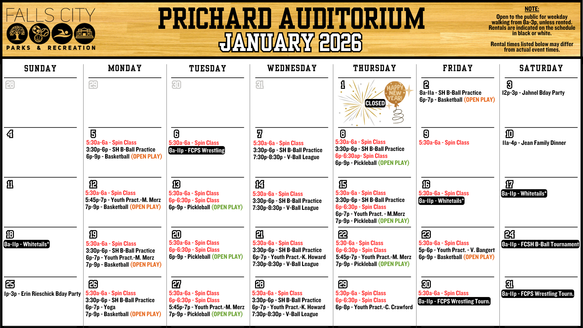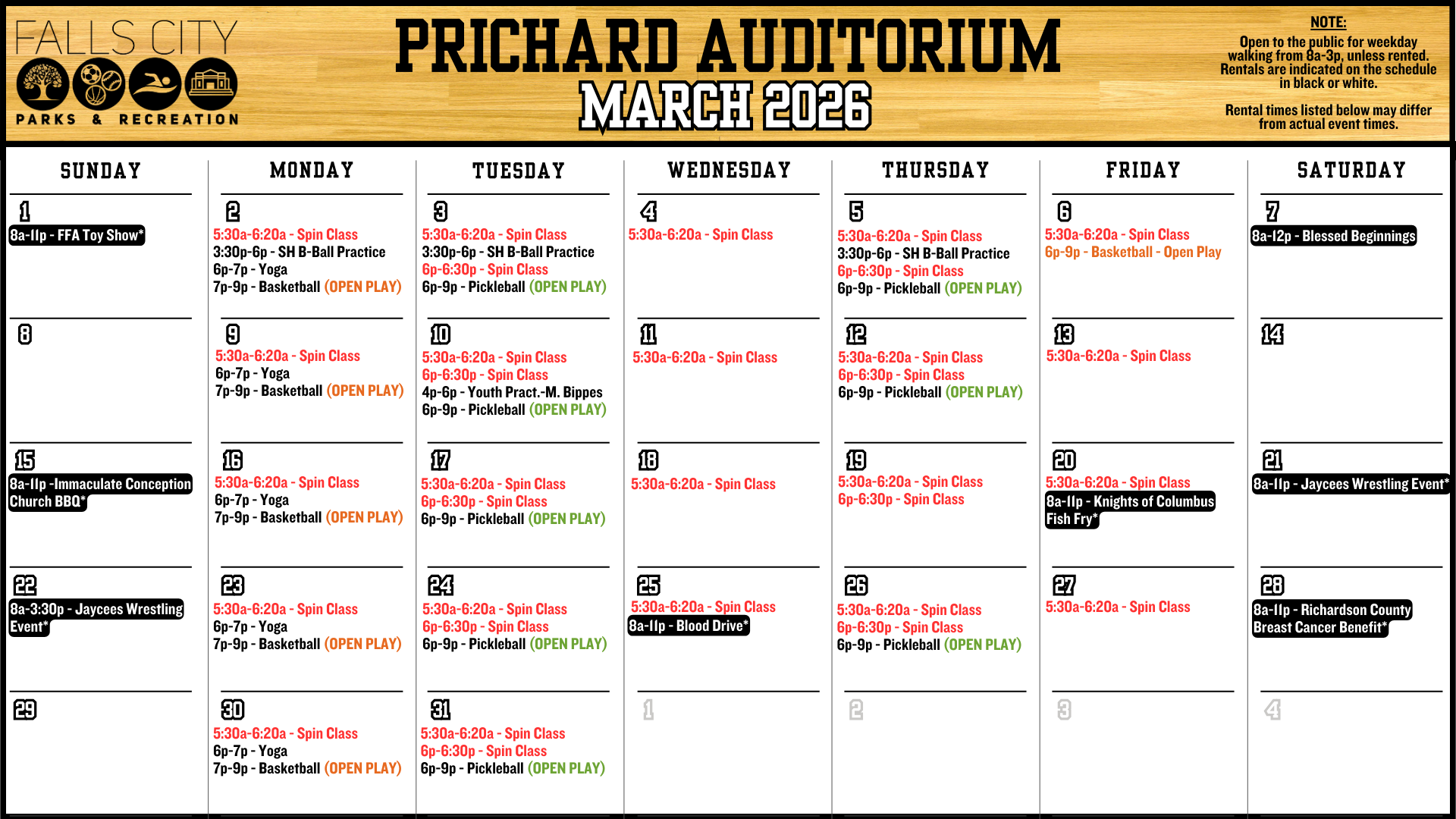Discover the perfect place to stay active and connect with the community at Prichard Auditorium’s Open Gym! Whether you enjoy shooting hoops, walking, or playing pickleball, our Open Gym activities offer something for everyone.